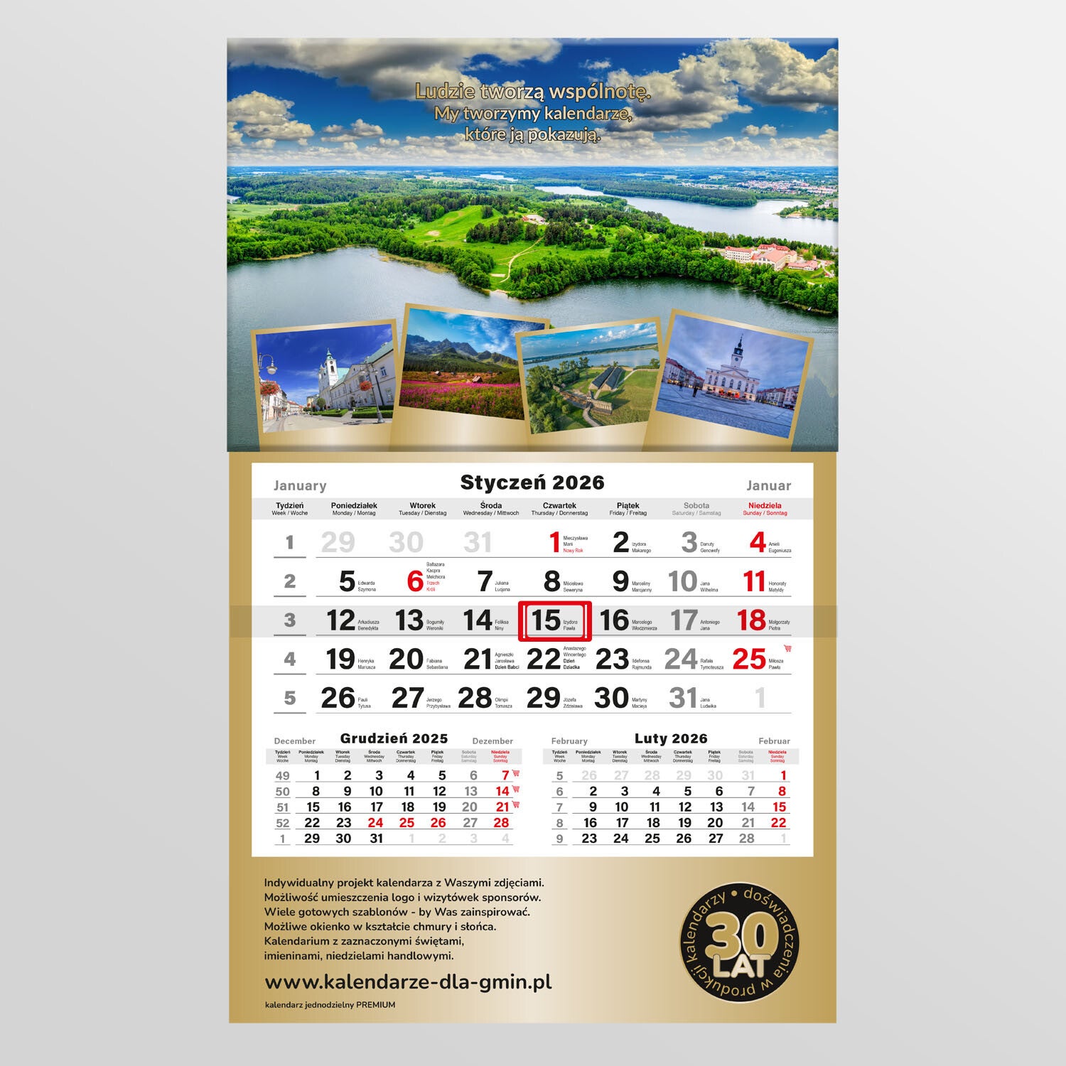 Format: 310x500 mm po rozłożeniu. Kalendarz składany. Zobacz rysunek techniczny.